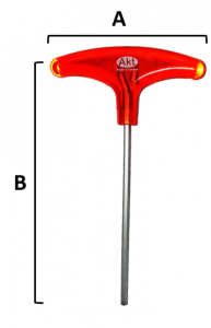 آچار آلن شش گوش دسته T با دسته پلاستیکی، ساخته شده از فولاد بسیار مقاوم S2 و دارای سطح با رنگ مسی برای باز کردن انواع پیچها میباشد. دسته تی شکل این آچار برای وارد کردن نیرو بسیار ایده آل است. این آچار آلن دارای سایز و ابعاد مختلفی است که با استفاده از جدول زیر میتوانید سایز مورد نیاز را انتخاب کنید و سپس با توجه به سایز و کد محصول آچار آلن مورد نظر را خریداری کنید.