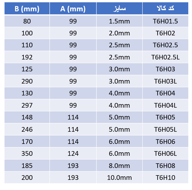 | سایز | 1.5mm, 2.0mm, 2.5mm, 3.0mm, 4.0mm, 5.0mm, 6.0mm, 8.0mm, 10.0mm |